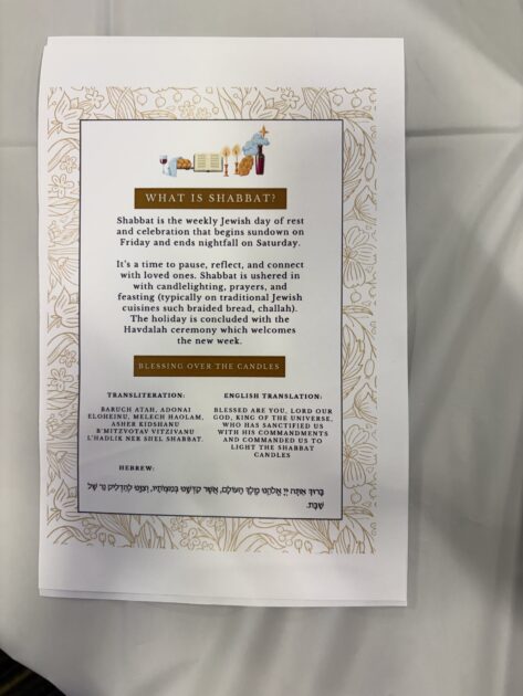 For this event, Tweedy mentioned the most challenging aspect of planning the Shabbat Dinner was keeping the event culturally accurate.
